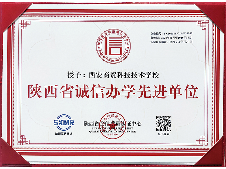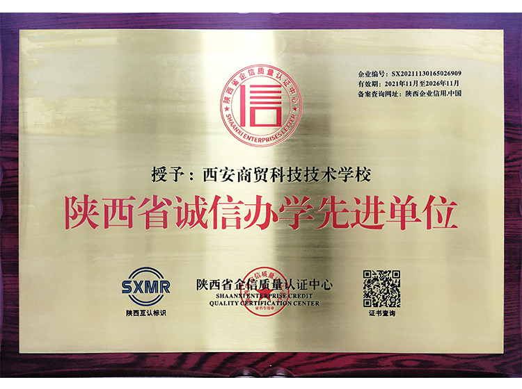 西安商貿(mào)科技技術(shù)學校成立于2004年,是一所隸屬于陜西省人力資源和社會保障廳的全日制省屬院校。學校坐落于西安市未央?yún)^(qū),毗鄰國家AAAA級漢城湖景區(qū),交通便利,環(huán)境優(yōu)美,設(shè)施完善,占地面積180余畝,綠化率達45%,三季有花、四季常青,被譽為“園林式校園”。秉承“厚德強技,知行合一”的校訓,堅持內(nèi)涵式發(fā)展,注重養(yǎng)成教育,培養(yǎng)德、智、體、美、勞全面發(fā)展的高素質(zhì)現(xiàn)代化技能人才。